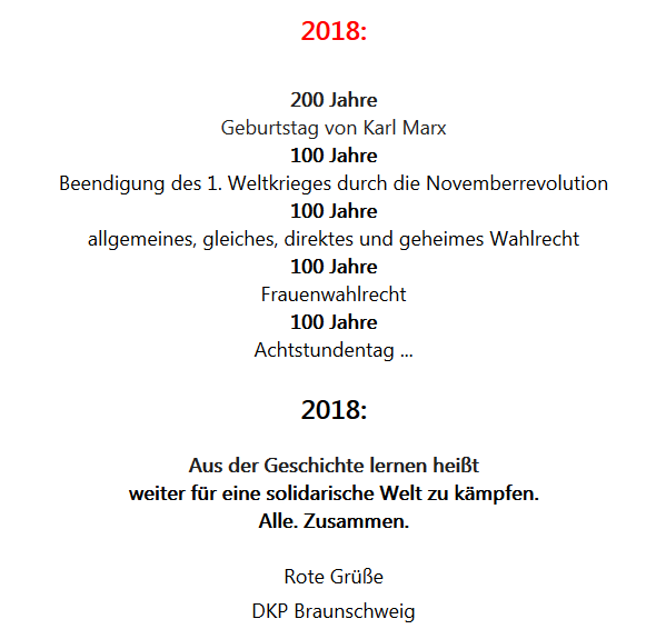 1. Die DKP ist die Nachfolgepartei der verbotenen KPD und der SED. Sie gilt als linksextremistisch und wird vom Verfassungsschutz beobachtet. Auf diese Grüße verzichte ich gern.