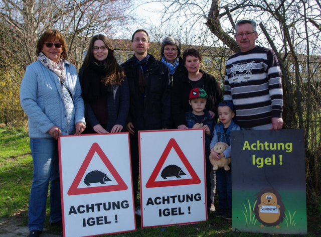 Am Samstag, 7. April, wurden in Melverode die ersten Igelschutzplakate am Gartenzaun der Familie Philipps aufgehängt, was die beiden Kinder Arne und Lars schon aus dem vergangenen Jahr kennen.