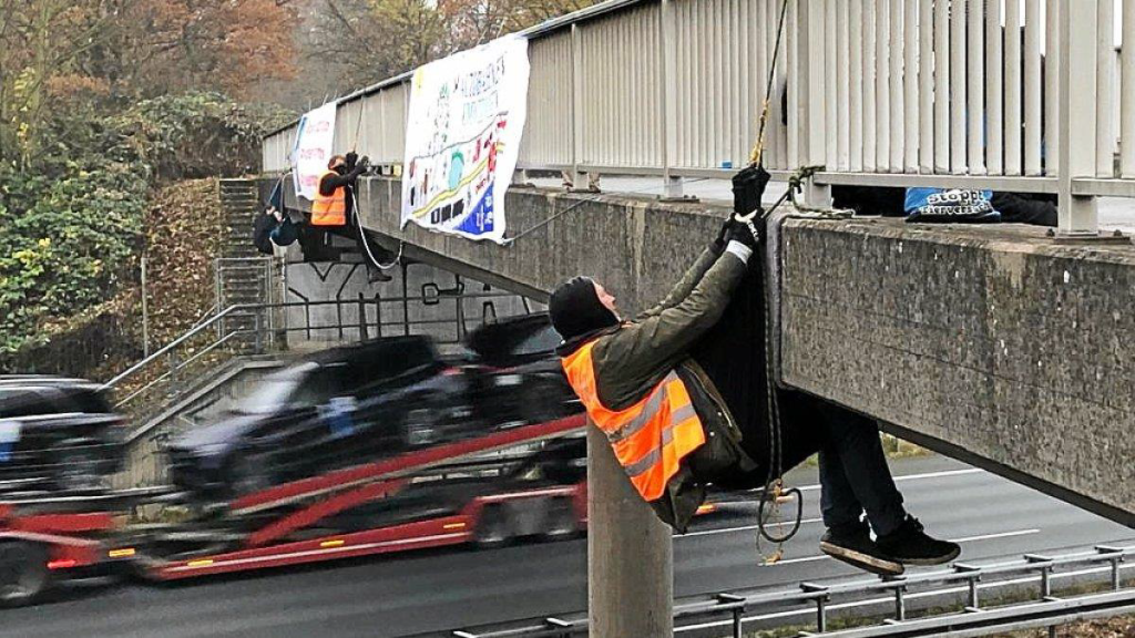 “Abhängen fürs Klima”: Abseilaktion über der A39 am 3. April 2022
