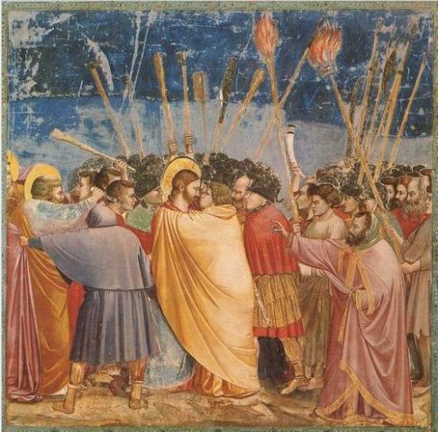 „Der Judaskuss“ von Giotto di Bondone. Fresken in der Arenakapelle in Padua, 1304–1306