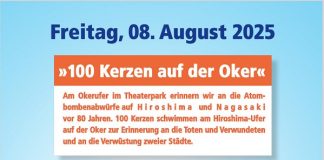 Hiroshima-Gedenken: 100 Kerzen auf der Oker