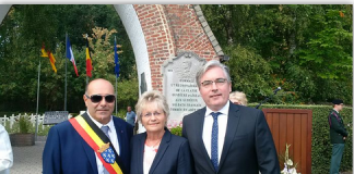 Bürgermeister*in Annegrat Ihbe, Jean Fersini und Volker Timmermann (Botschaft Brüssel) gedenken...