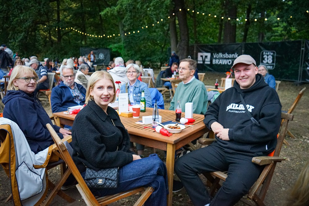 Begrüßt wurden die Gäste von Frau Karin Stemmer vom BBG-Vorstand – vom Podium aus eröffnete sie den Abend, erzählte von der Tradition der Sommerabende, dankte dem gesamten Team und lud alle herzlich ein, die beiden kommenden Abende mit BBG in vollen Zügen zu genießen. Schon beim Einlass spürte man die Vorfreude: volle Tische, fröhliche Paare, Freundesgruppen, Familien mit Kindern – alle gespannt auf einen unvergesslichen Abend.