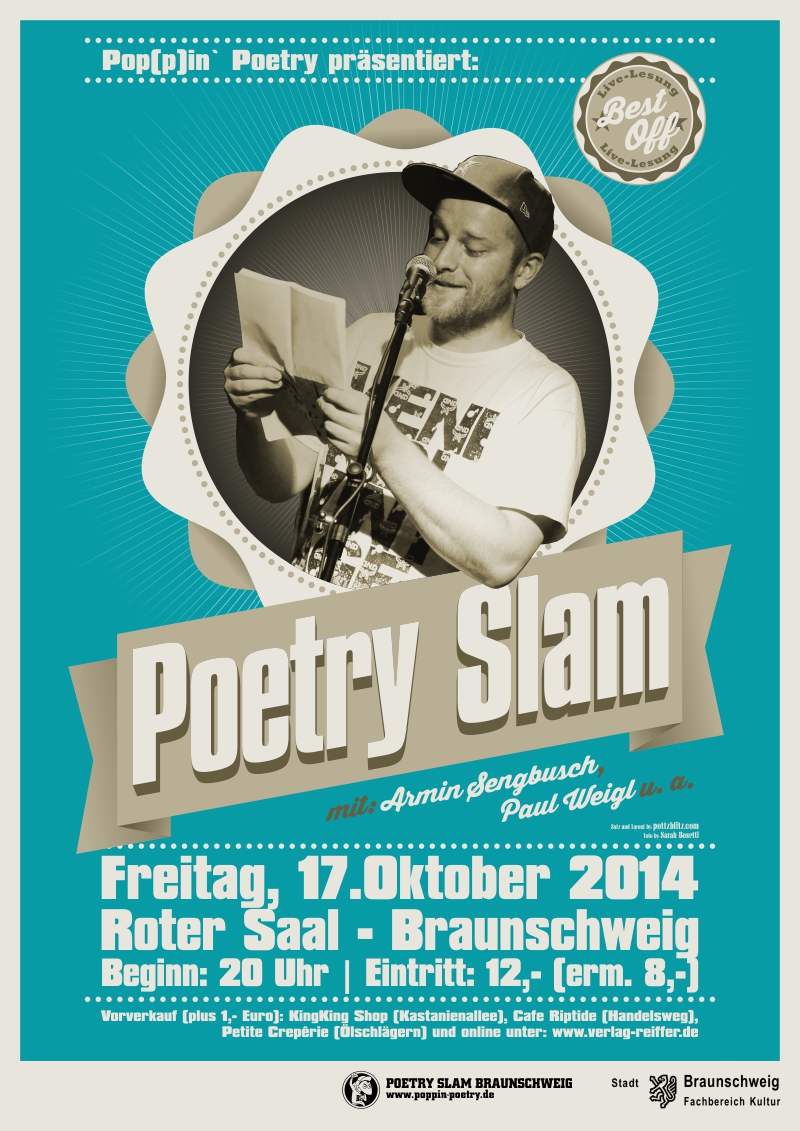 Veranstalter: Poppin‘ Poetry in Kooperation mit dem Kulturinstitut (Kontakt: Patrick Schmitz, E-Mail: info@poppin-poetry.de) Eintritt: 12,00 EUR / Ermäßigt: 8,00 EUR