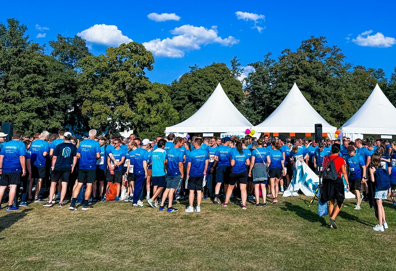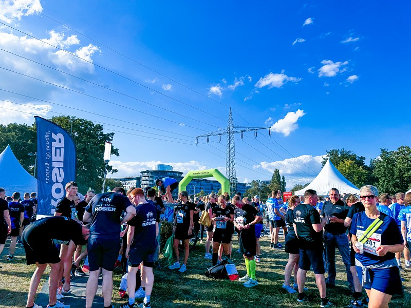 Ich selbst war dieses Mal mit meinen Kolleginnen und Kollegen dabei. Schon beim Ankommen herrschte eine gespannte, aber fröhliche Atmosphäre. Wir machten uns bereit, suchten unseren Tisch im großen Zelt, posierten für ein Gruppenfoto – und dann ging es auch schon in Richtung Startlinie.