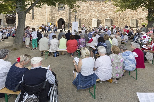 Ab dem 10. Mai 2017 ist auf dem Magnikirchplatz jeden Mittwoch um 17.15 Uhr mitsingen nicht nur erlaubt, sondern ausdrücklich gewünscht. Bereits im 5. Jahr startet an diesem Tag das „Bürgersingen“ der Bürgerstiftung Braunschweig in Kooperation mit der Kirchengemeinde St. Magni. Der Braunschweiger Shanty Chor e.V. eröffnet als Chorpate die Reihe, die am 13. September 2017 nach 19 Terminen mit dem Polizeichor Braunschweig enden wird. An jedem Mittwoch übernimmt ein anderer Chor die Patenschaft für das gemeinschaftliche Singen. Die Lieder des Tages wählt der jeweilige Chor aus. So kommt es insgesamt zu einer bunten Mischung. Manchmal kommt auch noch eine spezielle Zugabe auf einem Extra-Zettel dazu. Lieder von A-Z werden gesungen – darunter bekannte Volkslieder wie „Geh aus mein Herz und suche Freud“ bis hin zu „Die Gedanken sind frei“. Wer nicht textsicher ist, kann vor Ort das Textbuch der Bürgerstiftung Braunschweig für 2 Euro kaufen (oder einmalig für eine Gebühr, die erstattet wird, ausleihen).