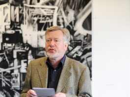 Der Direktor des Städtischen Museums Braunschweig, Dr. Peter Joch, vor einem der expressiven Gemälde der neuen Ausstellung „Ruth Baumgarte – Vision Afrika“. Foto: Klaus Knodt