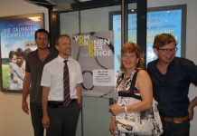 Stellten ihren Film im Universum vor (v.l.): Jörg Haaßengier, Prof. Dr. Jörg Overmann, Moderatorin Claudia Gorille, Jürgen Brügger. Foto: Klaus Knodt