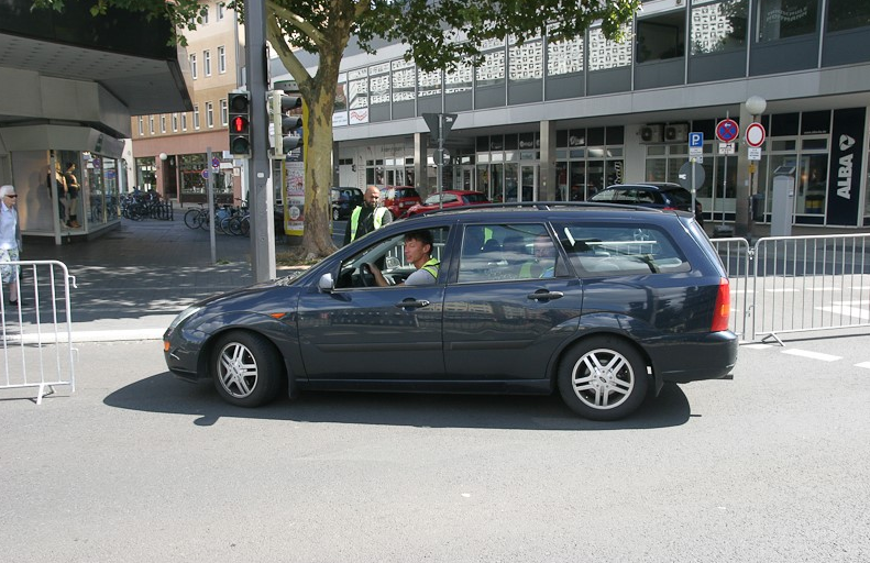 Für diesen Renn-Funktionär mit Berliner Kennzeichen wurde das Absperrgitter an der Einmündung Karrenführerstraße von der Security sofort geöffnet. Foto: Klaus Knodt