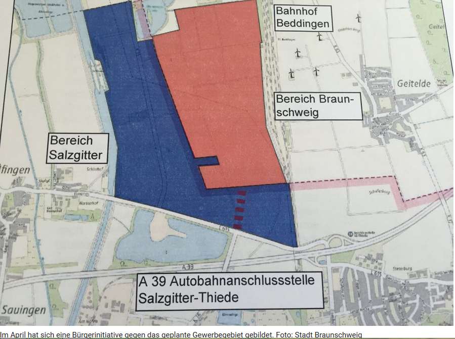 Hier soll ein Industriegebiet entstehen. Derzeit wird dort Ackerbau betrieben, auf 98er (Bodenfruchtbarkeitsskala) hoch ertragsfähigen Börde-Böden. Die werden dann zerstört.