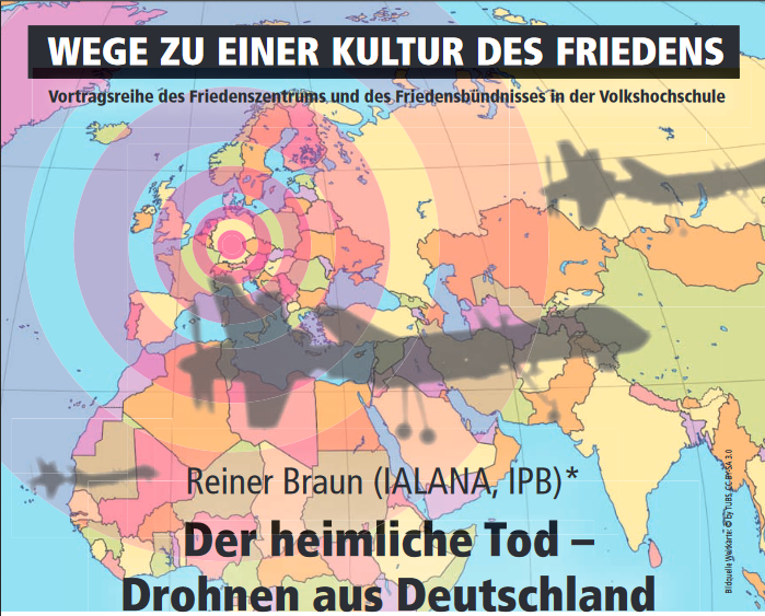 Der Tod durch Drohnen kommt in den Nachrichten selten vor. Und doch ist der Drohnenkrieg inzwischen Alltag – nicht nur in Somalia, Afghanistan und Jemen. Europa rüstet auf – auch im Bereich der militärischen Drohen: Die Bundesregierung will Drohnen in Israel bestellen und beteiligt sich an der Entwicklung der europäischen Drohne. Die Air Base Ramstein wird ausgebaut und Deutschland beteiligt sich an den Kosten, u.a. mit 180 Millionen Euro für ein neues Krankenhaus. Das zeigt, wie Rüstungsausgaben auch in anderen Haushaltstiteln versteckt werden.