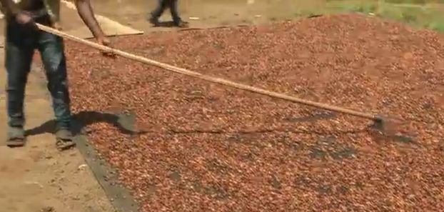 Kostenextensive Trocknung der „Kakaobohnen“ auf dem Boden in Kamerun.