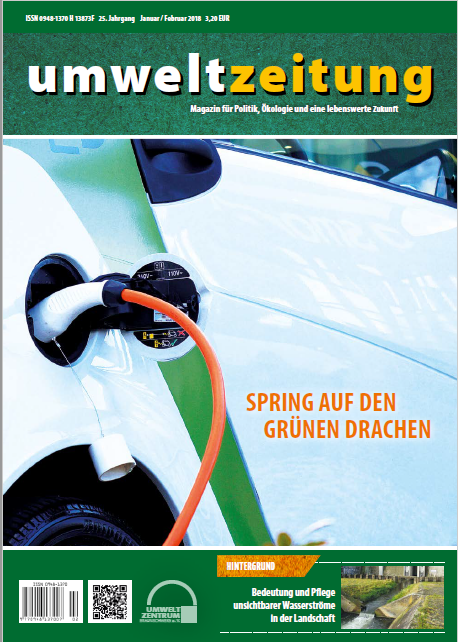 Geht die Umweltzeitung in ihrem 25. Jahrgang ins Fantasygenre? Gemach, gemach, ganz so ist es nicht, denn der grüne Drache steht hier symbolhaft für eine neue, emissionsfreie beziehungsweise -arme Mobilität. Gerne wird darunter auch Elektromobilität verstanden und diese bildet den Schwerpunkt unseres Titelthemas. Die Autoren schauen, ob E-Mobilität, speziell automobile E-Mobilität tatsächlich besser als unser derzeitiges System ist. Und ja, auch ohne einen grundlegenden Systemwechsel gemäß dem Motto „Anhalten und umsteigen“ kann heute ein E-Pkw gegenüber herkömmlichen Benzinern oder Dieseln in Sachen Emissionsarmut schon punkten. Doch reicht das? Wie sieht es mit den Batterien aus? Brauchen die nicht viele seltene Metalle? Auch dieser Frage gehen die Autoren nach bei einem Besuch in der Battery Labfactory der TU, einem jener neuen Forschungsgebiete, welches außerhalb der Hochschule, zumindest in der Stadt, nur Insidern geläufig ist, was schade ist. Denn eine bessere Rückkopplung zwischen lokaler Politik und der hier geleisteten, oftmals sehr guten Forschung wäre wünschenswert, zumindest sehr ausbaufähig.