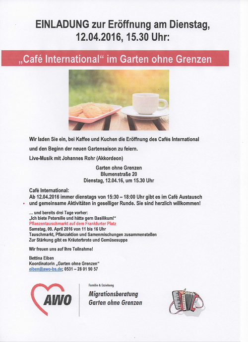 KulturPolitik Einladung ins „Café International“ Von Gastbeitrag - 6. April 2016 0 Teilen FacebookTwitterWhatsAppLinkedinEmail