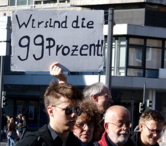 Nein! Wir sind die 99%! Wir sind die 99% der Weltbevölkerung, um die es eigentlich geht. Deshalb sind wir heute auf der Straße und zeigen uns.