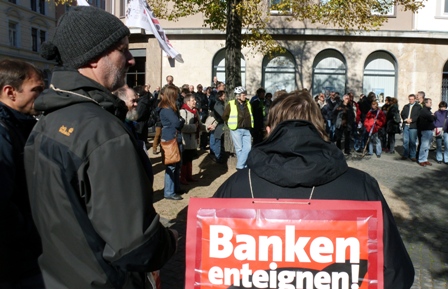 200 Menschen demonstrierten heute in Braunschweig gegen die Zerstörung der Demokratie durch den internationalen Finanzkapitalismus. Die Demo war eingebunden in weltweite Proteste, die an diesem Tag stattfanden.