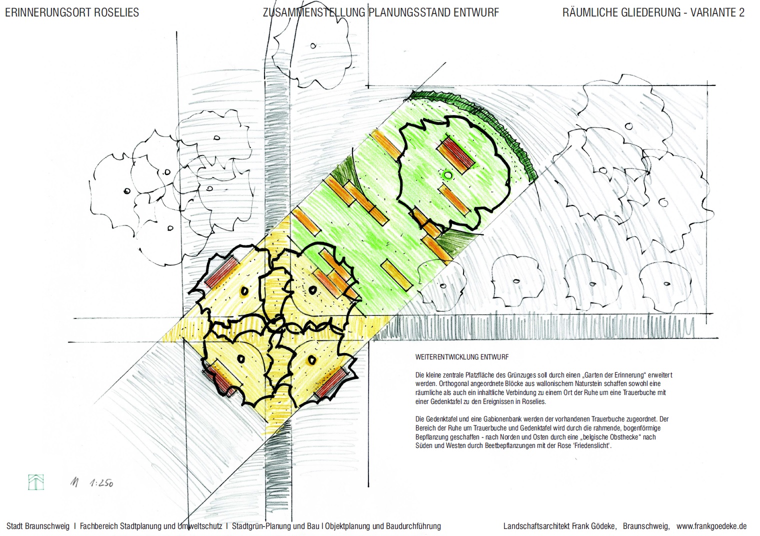 1. Den Beschlussfassungen im Bezirksrat, in den Ausschüssen und schließlich im Rat lag kein konkreter Lageplan des vorgesehenen Gartens der Erinnerung bei. Eine Grafik mit Impressionen zeigte lediglich, wie schön so ein Garten aussehen könnte (Anlage 1). Wenn dafür auf einen Platz, der von den Kindern der Nachbarschaft zum Spielen in Besitz genommen wurde anstatt auf ähnlich geeignete „brachliegende“ Flächen zugegriffen werden soll, haben Ortsbürgermeister und Kulturverwaltung sich quasi selbst dazu ermächtigt – ohne einen entsprechenden Gremienbeschluss.