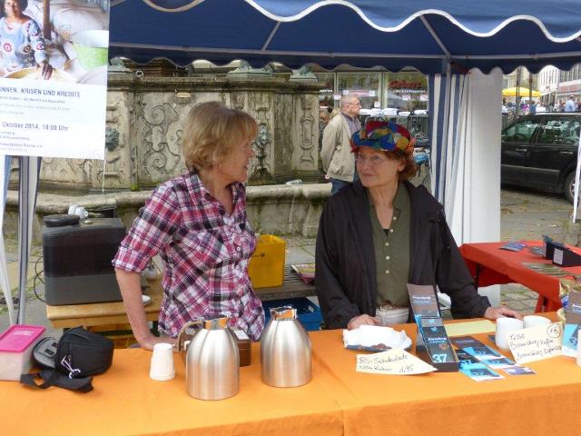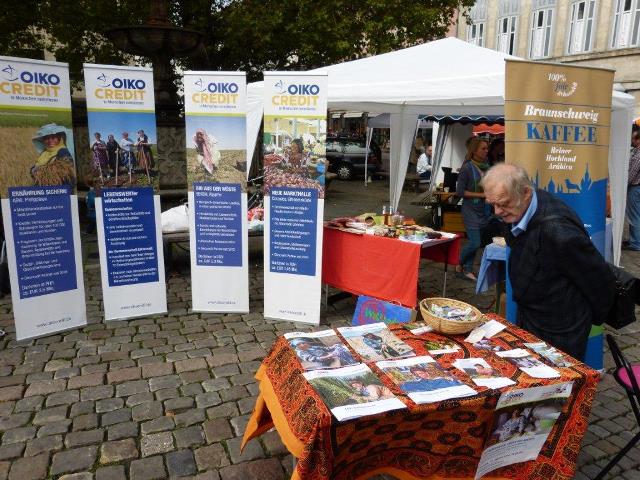 Hier verkaufen Braunschweiger Bürgerinnen Bio-Fair-gehandelten „Braunschweig Kaffee“ und Bio-Fair-gehandelte „Braunschweig Schokolade„, die es zukünftig auch mit 60 % Kakao gibt. Die Vollmilch, die vor fünf Wochen auf den Markt kam, war sehr schnell verkauft. Die Bio-Faire-Braunschweig Schokolade scheint ein echter Braunschweiger Renner zu werden.