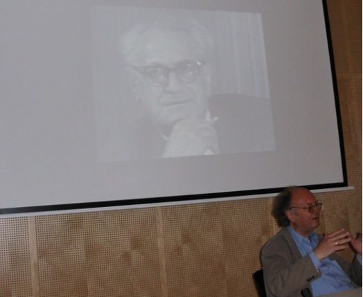 Prof. Perels am 11.06.2011 bei einem Vortrag in Wolfenbüttel über den Fritz Bauer-Film von Irmtraut Wojak.