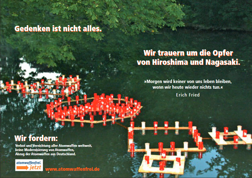 73 Jahre nach dem ersten Atombombenabwurf gedenken auch wir der Opfer der ersten und hoffentlich letzten nuklearen Massenvernichtungsaktion der Geschichte, durch die im August 1945 die japanischen Städte Hiroshima und Nagasaki verwüstet wurden.