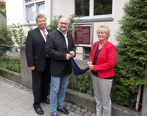 Foto von links: Landtagsvizepräsident Klaus-Peter Bachmann, der Enkel von Kuno Rieke und Bürgermeisterin Annegret Ihbe