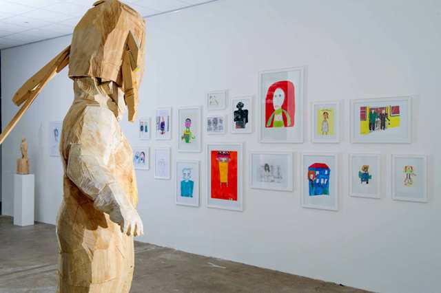 Bilder und Zeichnungen von Künstlern des Ateliers Geyso20 sind den Skulpturen gegenüber gestellt. Auch hier wird der Betrachter konfrontiert mit der menschlichen Figur, begegnet einem direkten Blick, muss eine Haltung einnehmen zum Dargestellten.