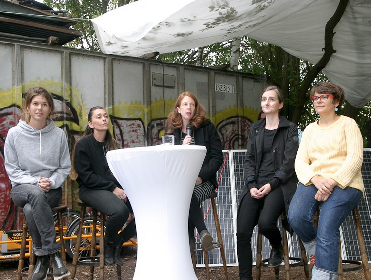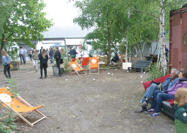 Schon vor 20 Jahren hat die Initiatorin Henrike Wenzel das Grundstück mit einstürzenden Altbauten und industriellem Restmüll erworben. Die im Kultumanagement tätige, diplomierte Kunstwissenschaftlerin: „Es soll ein Platz werden mit Café, Biergarten, Ausstellungshalle und viel Platz für Ausstellungen und Performances jeder Art.“ Dank städtischer Förderung und einiger Sponsoren konnten zur Eröffnung überwiegend aus dem HBK-Umfeld stammende AbsolventInnen ihre Werke präsentieren.