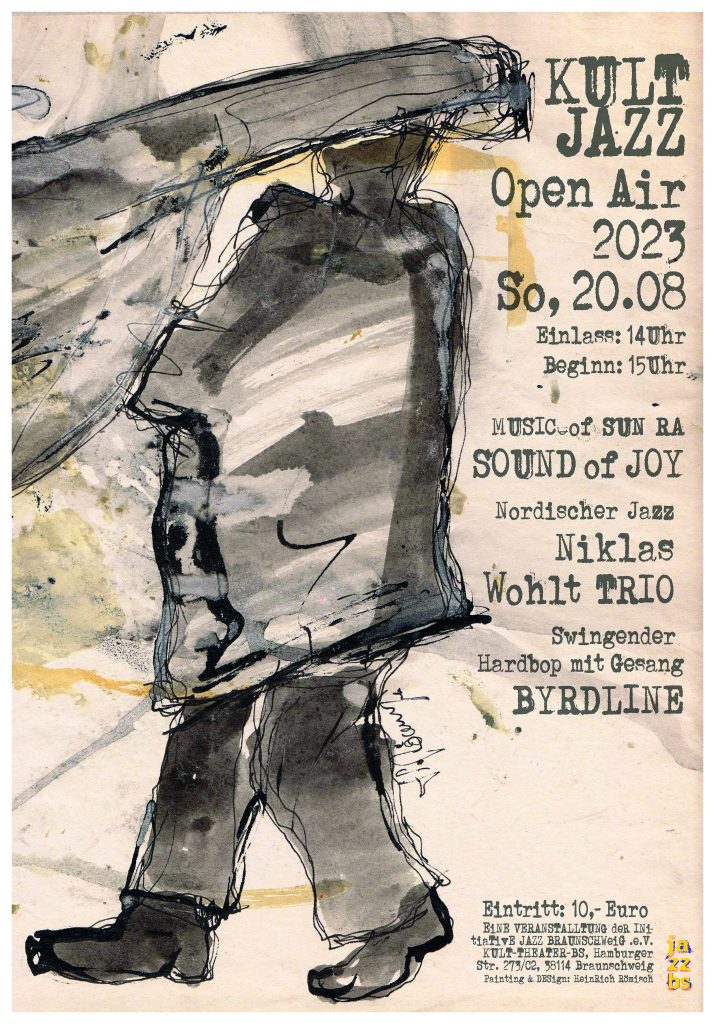 Kultur Jazz Open Air im Kult Von Gabriele Mersch - 14. August 2023 0 Teilen FacebookTwitterWhatsAppLinkedinEmail nach den Erfolgen in den letzten Jahren, veranstaltet die Initiative Jazz Braunschweig e.V. bereits zum dritten Mal einen Jazz-Nachmittag im Hof des Kult. Beginn ist 15.00 Uhr, Einlass ab 14.00 Uhr. Eintritt 10,00 €. Das Publikum sitzt überdacht!
