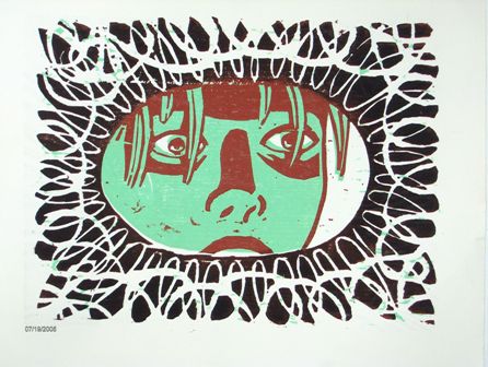 Junge, da mußt du durch! Holzdruck und Skulpturen von Harald Schiel Comic trifft Holzschnitt, Holzschnitt trifft Comic.