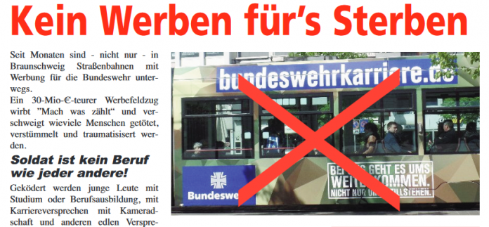 werden wir den unseren Mitbürger*innen unsere Meinung zur Bundeswehrwerbung an der Straßenbahn mit auf den Weg geben.