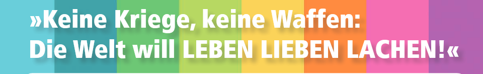 Politik „Keine Kriege, keine Waffen: Die Welt will LEBEN LIEBEN LACHEN!“ Von Uwe Meier - 23. August 2018 0 Teilen FacebookTwitterWhatsAppLinkedinEmail Flyer