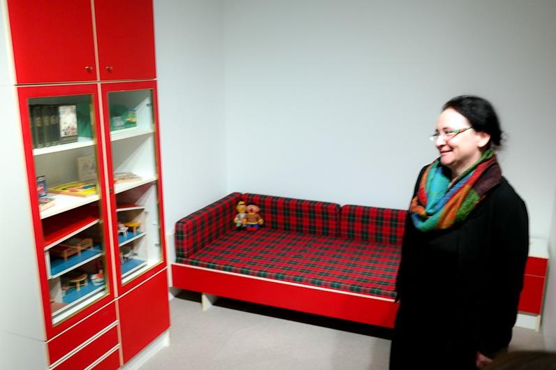Kuratorin Dr. Katrin Keßler vor ihrem eigenen Jugendzimmer, das jetzt die Ausstellung schmückt. Foto: Klaus Knodt