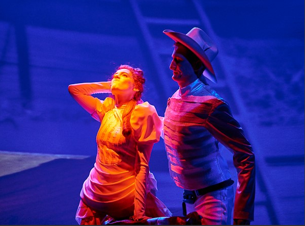 Jill McBain (Yevgenia Korolov) und „Mundharmonika“ (Valentin Erb) verbinden ähnliche Motive auf ihrem Rachezug. Foto: Staatstheater Braunschweig / ©Joseph Ruben