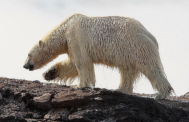 Eisbär ohne Eis auf Spitzbergen, Foto: NABU