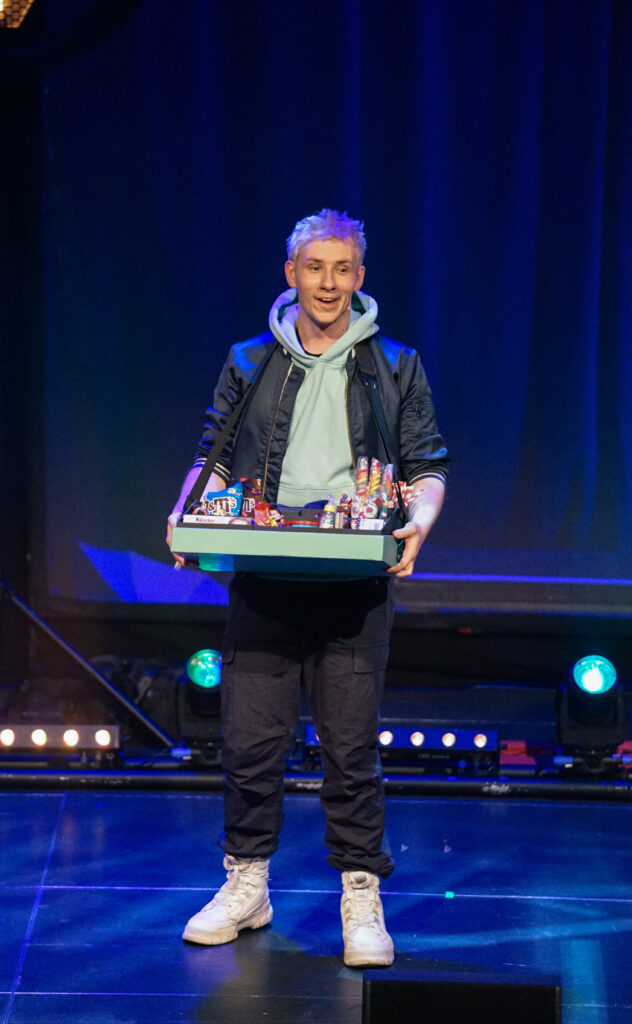 Zu den unvergesslichen Momenten gehörte auch ein Trick mit einem Ehering, der auf geheimnisvolle Weise verschwand – nur um an einem Ort wieder aufzutauchen, den wohl niemand im Saal erwartet hätte. Ein kleines Wunder, das für große Augen sorgte. Ebenso charmant waren seine spielerischen Einlagen mit Süßigkeiten, die ihren Weg ins Publikum fanden, sowie weitere Illusionen – darunter ein geheimnisvoller Tresor –, die für Staunen, Lachen und begeisterten Applaus sorgten.