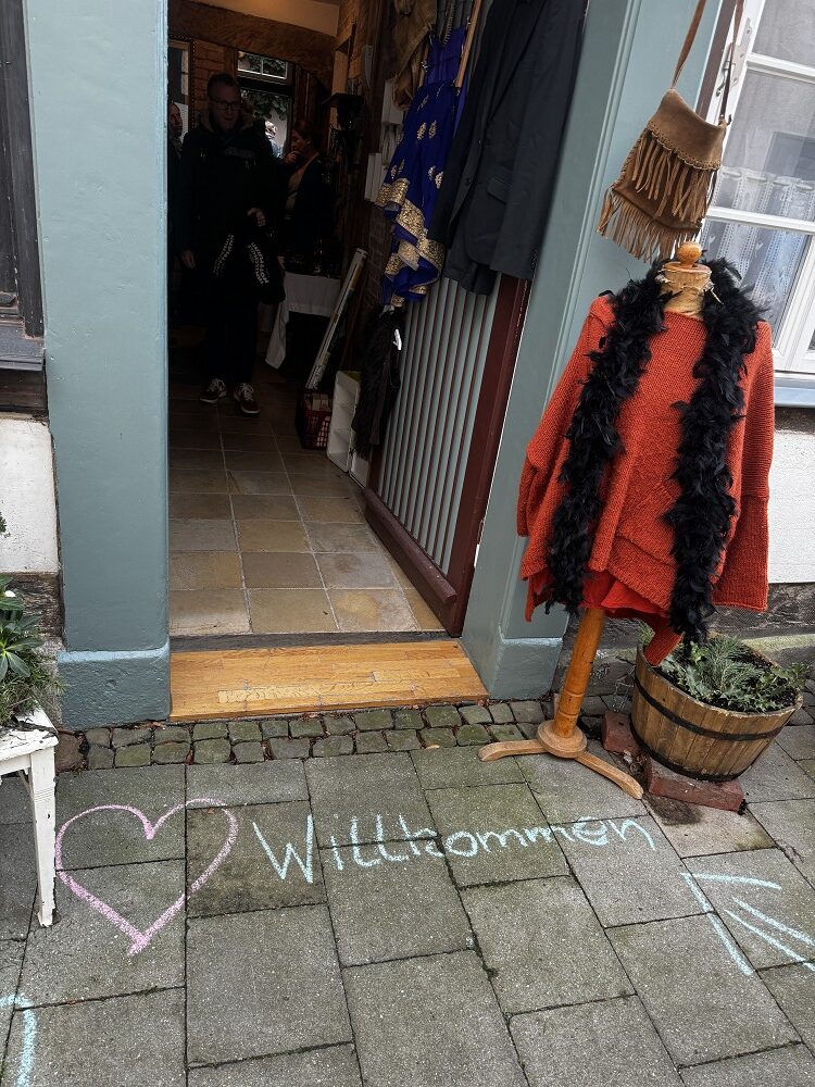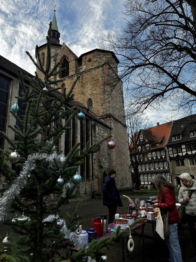Weiter ging es durch das Viertel, hinein in Höfe, über Kopfsteinpflaster, vorbei an bunten Ständen und kleinen Überraschungen. In einem besonders liebevoll gestalteten Hof gleich neben der Magnikirche dufteten frisch gebackene Waffeln und Pfannkuchen. Dort lernte ich Vanessa und Felix kennen, die für kleines Geld Dinge ihrer Kinder verkauften und mir erzählten, wie sehr ihnen solche Nachbarschaftstreffen geholfen haben, im Magniviertel anzukommen. Erst vor Kurzem aus Rautheim hergezogen, haben sie hier bereits neue Freundschaften gefunden.