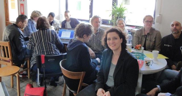 Voll bis auf den letzten Platz war das Informationszentrum für Anwohner und Flüchtlinge in Kralenriede, das sich jetzt „Welcome House ART-Kurve“ nennt, bei dem Besuch der Einrichtung durch die stellvertretende Vorsitzende der SPD-Bundestagsfraktion, Dr. Carola Reimann, zuständig für Arbeit und Soziales, Familie, Senioren, Frauen und Jugend vor wenigen Tagen. Der Raum ist gefüllt mit einer bunt gemischten Gruppe von Anwohnern, Ehrenamtlichen, die an diesem Nachmittag ihren „Dienst“ wahrnehmen und LAB-Bewohnern. „Das ist hier aber jeden Tag so – viele LAB-BewohnerInnen fühlen sich hier akzeptiert und kommen nach der ersten Kontaktaufnahme immer wieder, um der verordneten Eintönigkeit in der LAB zu entfliehen“ so Antje Kämpfe und Wolfgang Büchs (BIBS-Fraktion), die Sprecher der Gruppe „ART-Kurve“.