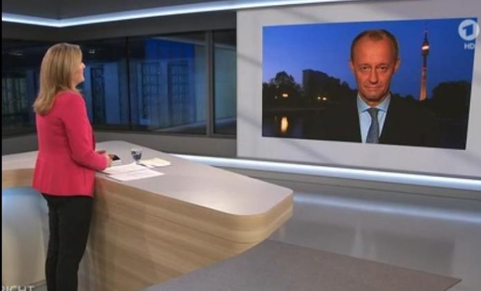 Vier bis fünf Euro pro Tag sollen auch Geringverdiener am Aktienmarkt für ihre Rente anlegen, befand CDU-Vorsitzendenkandidat Friedrich Merz im Gespräch mit Moderatorin Tina Hassel im „Bericht aus Berlin“. Foto: ARD aktuell