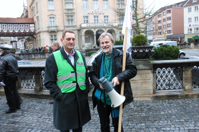 Der Polizeisprecher Joachim Grande (hier mit BIBS-Fraktionsführer Peter Rosenbaum) war froh verkünden zu können, dass es keine außergewöhnlichen Vorkommnisse gab.