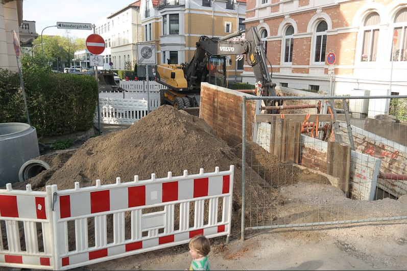 Um 14.55 Uhr wurde die Feuerwehr alarmiert, weil ein Bagger in der Hennebergstraße einen Bomben-Blindgänger berührt hatte. Eine benachbarte Tankstelle in der Wolfenbütteler Straße wurde nicht geräumt. Foto Klaus Knodt