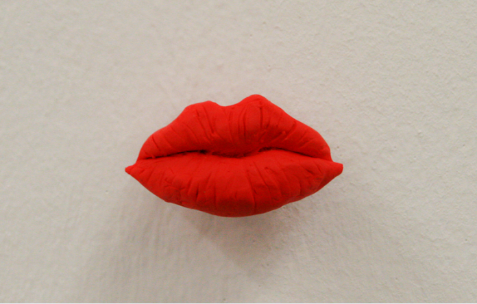 „Kiss Me“ von Hanna Nitsch. Plastik im Format 6 x 3 x 5 cm in Fimoplast auf Plexischeibe.  Foto:  Marcus von Bucholz