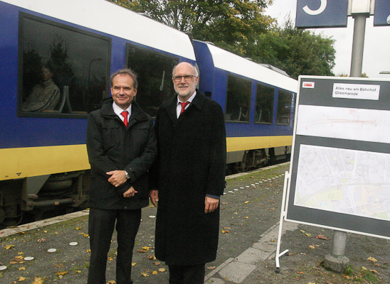 Mit einem 100 Millionen Euro schweren Investitionsprogramm stärken das Land Niedersachsen, die Bahn und die Stadt Braunschweig den öffentlichen Personennahverkehr in der Region. Schon 2020 soll der Bahnhof Gliesmarode zu einem neuen Knotenpunkt für Mobilität werden. Oberbürgermeister Ulrich Markurth und MdL Detlef Tanke, Vorsitzender der Verbandsversammlung Regionalverband Großraum Braunschweig (beide SPD), stellten das Projekt der Öffentlichkeit vor.