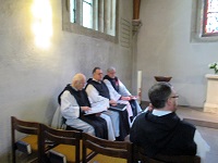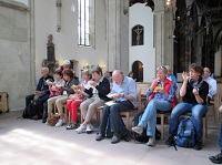 Doch einen Pilgerweg eröffnen kann man nicht ohne Pilger. Vierzig Personen waren der Einladung gefolgt, die sich in der Frauenkapelle des Klosters Riddagshausen trafen. Gregorianische Gesänge leiteten die Pilgertour ein. So machte sich dann die Gruppe auf den Weg. Einige mussten die Erfahrung machen, dass Pilgern nichts mit bummeln oder flanieren zu tun hat. Das Motto lautete “von Kloster zu Kloster.”