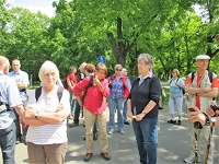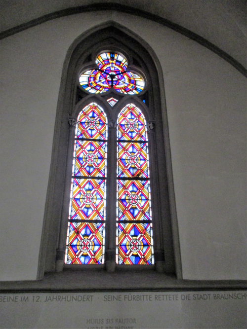 Es wurde durch Parkanlagen, vorbei an Gärten und durch Straßen gepilgert, immer der Jakobsmuschel folgend. Der erste Halt war dann die St. Leonhardskapelle, ein kleines Kirchlein aus dem 12. Jahrhundert, und das neben dem Dom den 2. Weltkrieg ohne größere Schäden überstanden hat. Die Kirche ist sehr einfach. Man ist dort weder evangelisch noch katholisch. Die Gläubigen gehören zu einer Christengemeinschaft, in die man nicht hineingeboren wird, sondern für die man sich irgendwann entscheidet. Mancher würde wohl sagen es hat ein wenig mit spiritueller und esoterischer Weltanschauung zu tun. Es ist schwer vorstellbar, dass es mal einen selbständigen Flecken St. Leonhard gab, der dann um 1860 langsam mit Braunschweig zusammenwuchs.