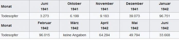 Insgesamt starben von Juni 1941 bis Juni 1942 etwa 470.000 Menschen – hauptsächlich durch verhungern. Quelle Wikipedia