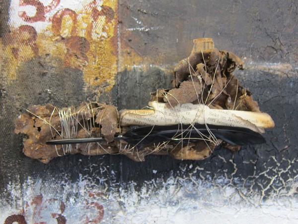 Petra Müllers Bilder entstehen aus sich selber – und aus ihrer (Vor)-Liebe zu Rost, Kaffee und allem was Baumärkte so zu bieten haben.