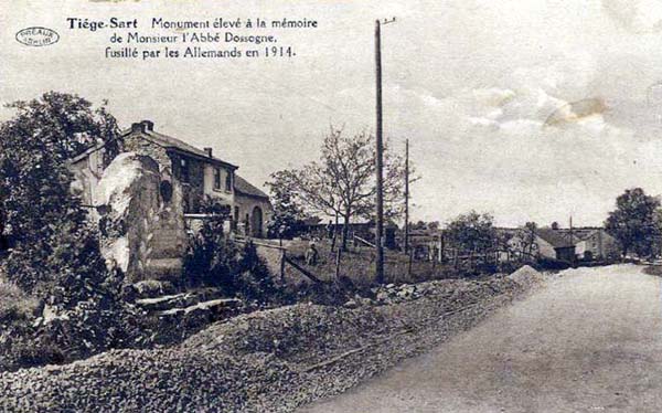 Der Pfarrer des ersten Dorfes nach der deutsch-belgischen Grenze Hockai, Abbé Jean Toussaint Joseph Dossogne, wurde dann am 11. August 1914 tatsächlich hingerichtet. Dieser Priestermord ist in einer Dokumentation des französischen Außenministeriums von 1915 über deutsche Kriegsverbrechen als Fall Nr. 65 aufgeführt. Im Tagebuch eines Soldaten namens Menge (10. Reserve-Korps des Reserve-Infanterie-Regiments Nr. 74) findet sich der folgende Eintrag: