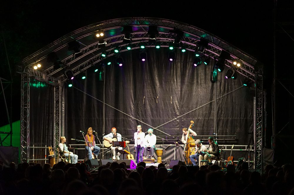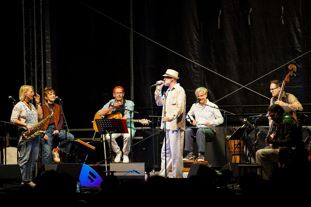 Doch das wahre musikalische Feuerwerk begann nach der Pause. Mit Einbruch der Dunkelheit tauchte ein stimmungsvolles Lichtspiel die Freundschaftsbühne in eine romantische, fast magische Atmosphäre. Die Okertones präsentierten auch eine andere Seite ihres Repertoires – melancholisch, nachdenklich, voller Tiefe und Emotion. Besonders eindrucksvoll: die nahtlose Zusammenarbeit mit zahlreichen Gastmusikerinnen und -musikern, die dem Abend zusätzliche Klangfarben verliehen.