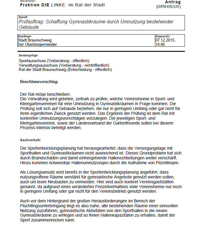 Politik Ratsantrag Die Linke: „Prüfauftrag: Schaffung Gymnastikräume durch Umnutzung bestehender Gebäude“ Von Uwe Meier - 14. Dezember 2015 0 Teilen FacebookTwitterWhatsAppLinkedinEmail
