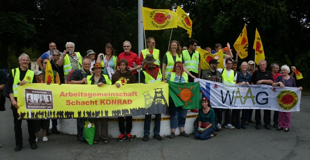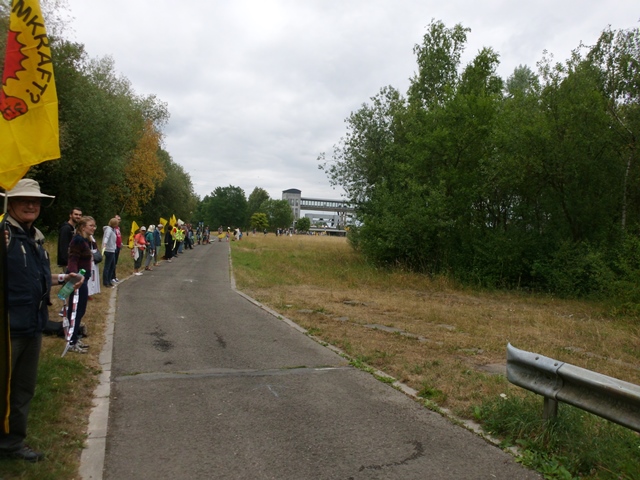 Natürlich war auch das Plakat vom „Weltatomerbe Braunschweiger Land“ (Asse II, Morsleben, Schacht Konrad und Eckert &Ziegler) dabei. Noch steht die Kette nicht, aber sie stabilisiert sich.